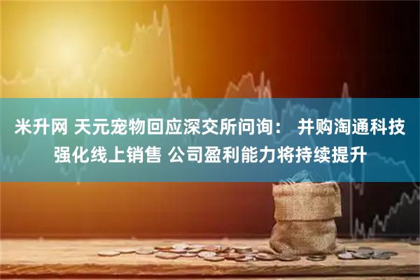 (原标题:天元宠物回应深交所问询: 并购淘通科技强化线上销售 公司盈利能力将持续提升)米升网 9月5日晚,杭州天元宠物用....