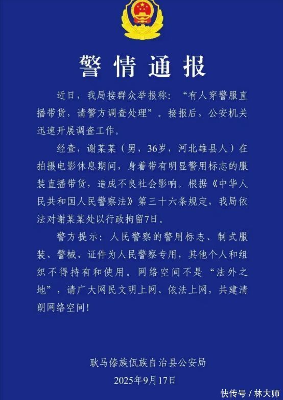 这不,谢孟伟最近就因为直播的时候私自穿警服直播带货,被网友举报!一开始谢孟伟的粉丝还狡辩称那是在拍戏,拍戏的过程中顺便给家人们带带货!直播过程中有网友曾问他警服是否能够随便穿,谢孟伟也承认“肯定不能随便穿”。但因为他觉得拍戏间隙穿警服带带货问题不大,所以才犯下错误。有律师称:穿警服拍戏也是需要报批,何况直播带货了!