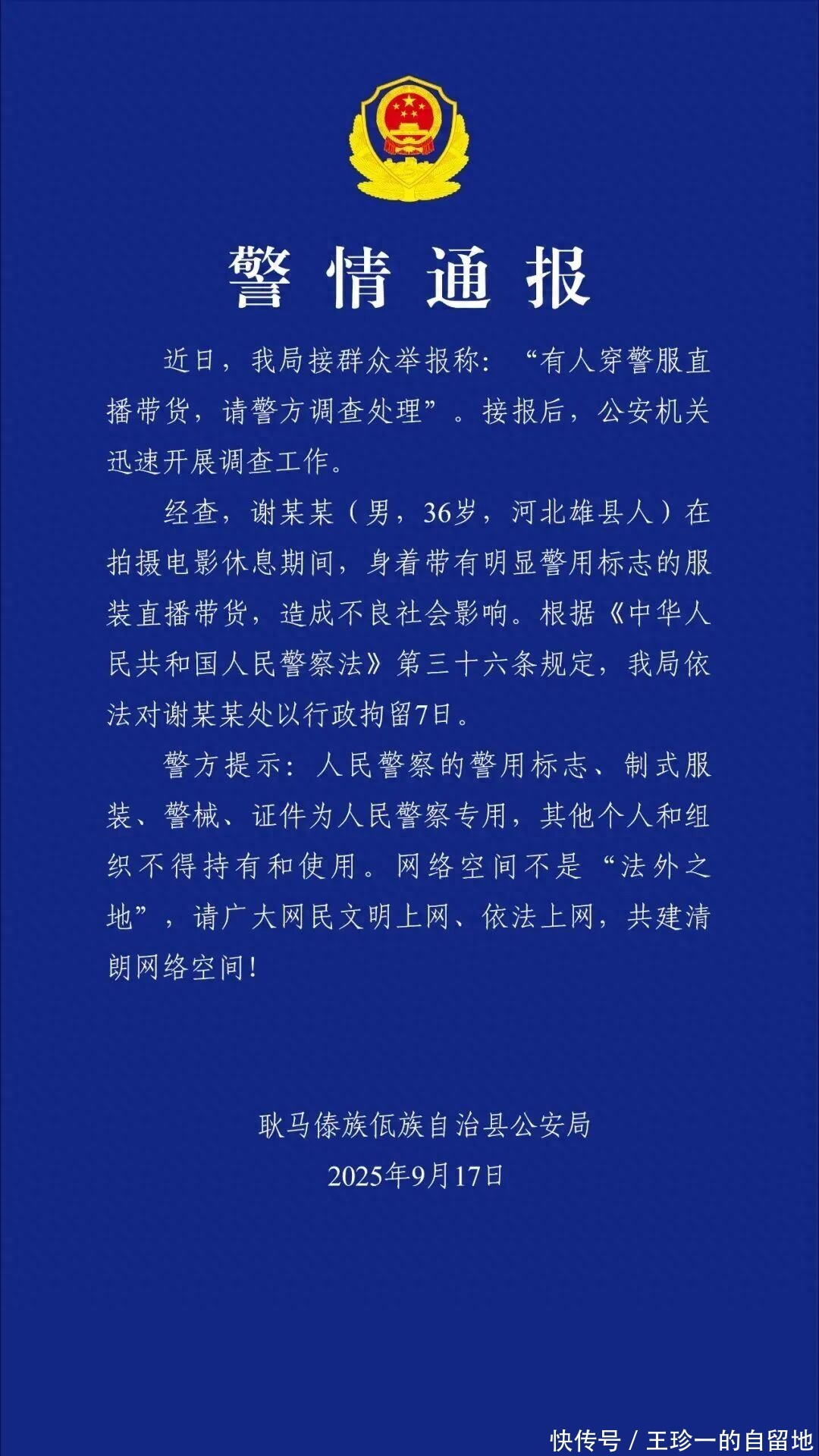很显然,嘎子穿警服直播带货并没有得到相关部门批准。