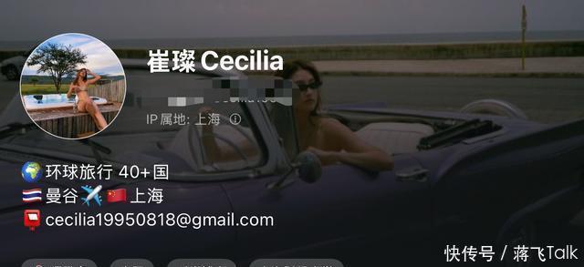 崔璨毕业于上海财经大学,今年才30岁,和汪雨有着18岁的年龄差,她身材火辣一双长腿又细又直,靠着颜值在社交平台吸粉6万,日常就是全世界到处旅行,有丰厚的家底支持。